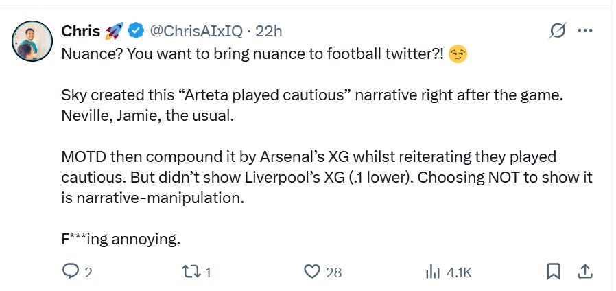 Și totuși, manipularea informațiilor și căutarea unui confirmation bias împotriva lui Arsenal a atins noi cote în acest sezon. E amplificată de discursul mass-media, care ignoră complet nuanțele.