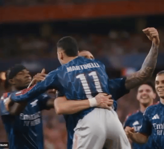 Minutul 71. Abia intrat pe teren și tot mai contestat de fani, Gabriel Martinelli deschide scorul pentru Arsenal, după o acțiune personală în stilu-i caracteristic. Conștienți de perioada grea prin care trece brazilianul, toți colegii lui aleargă plini de bucurie spre el, ca să-i fie alături la sărbătorirea golului.