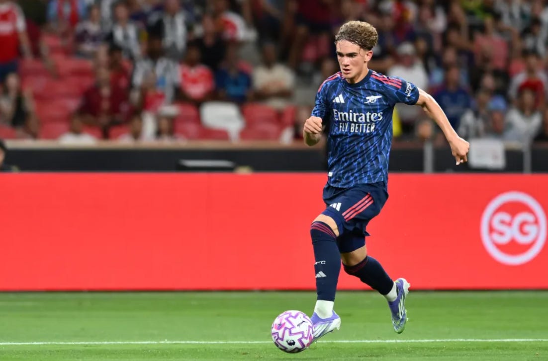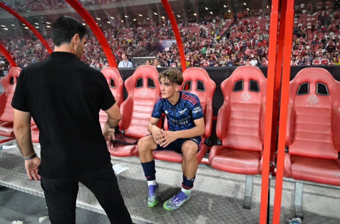 Drumul său către echipa mare a fost foarte bun până acum (s-a antrenat cu prima echipă în ultimul an, a fost luat în presezon vara asta, a jucat în amicale) și trebuie continuat pas cu pas, nu printr-o scurtătură unde are șanse mai mari să se rătăcească. Își va face debutul în Premier League, însă Nwaneri (rezerva lui Odegaard) și Madueke (rezerva lui Saka) ar trebui să aibă prioritate în majoritatea meciurilor din acest sezon.