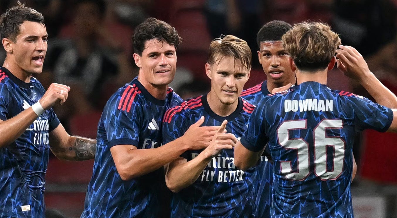 Pe cine înlocuiește, deci, Nwaneri? Pe Ødegaard. Da, va trebui să se bată pentru asta, mai ales că se conturează o revenire în formă și tonus a căpitanului, vizibilă în cele două meciuri de pregătire, deloc ușoare, în care pare că își asumă mai multe șuturi spre/pe poartă și incursiuni, spre liniștea mea sufletească și a viitorului G/A de la mijloc.