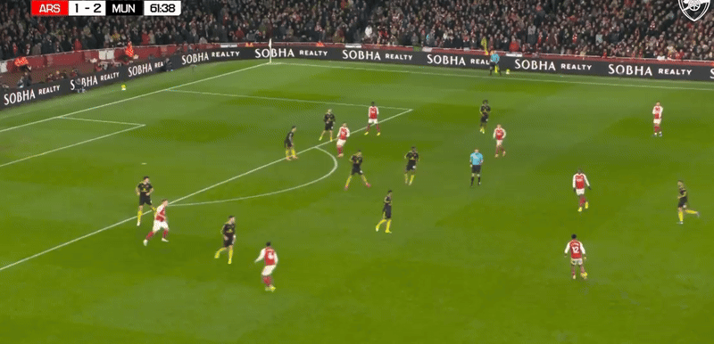 Problema s-a accentuat și mai tare după ce Saka a trecut în stânga, odată cu intrarea lui Madueke. Deși e stângaci și extremă stânga la origini, pare că și-a „uitat” reflexele de bandă: a intrat constant în centru cu mingea, fix acolo unde nu aveam nevoie de încă un om.