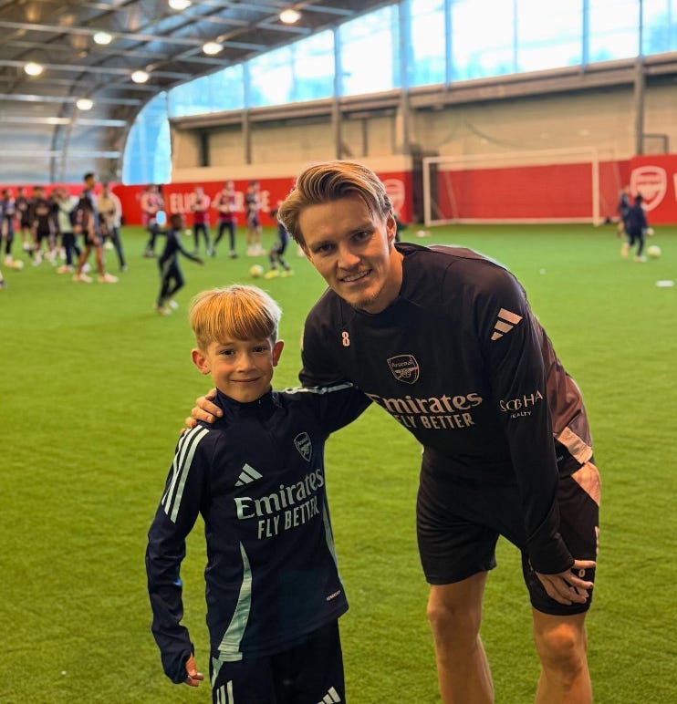 Cu atât mai mare mi-a fost bucuria să descopăr că, din toamna anului trecut, avem și un puști român sub contract cu academia Arsenal. Matei este la început de drum, dar deja face pași importanți într-un mediu extrem de competitiv. Florin, tatăl lui Matei, a avut amabilitatea să stea de vorbă cu mine despre parcursul fiului său, despre sacrificii, echilibru și micii pași care pot duce, într-o zi, spre fotbalul mare.
