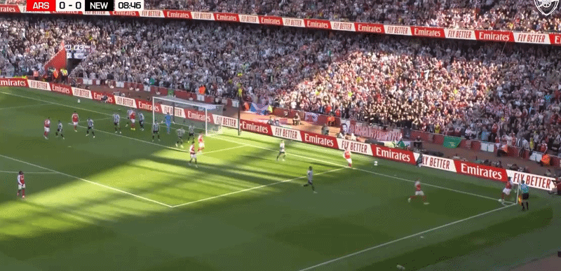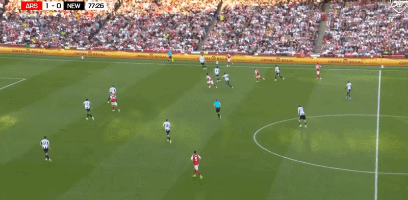 💡 În sfârșit a ieșit un gol dintr-un corner bătut scurt. Cred că sunt deja câteva săptămâni bune de când am observat trendul de a bate scurt cornere și lovituri libere din preajma careului. Nu părea că ne iese nimic, dar în același timp nici la execuțiile tradiționale nu au mai fost inspirați Rice sau Madueke. După două încercări eșuate în primele minute, al treilea s-a încheiat cu un super gol.