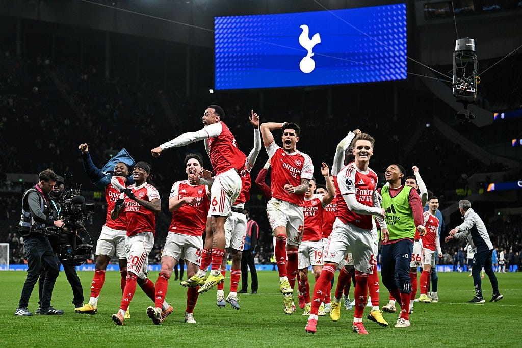 😁 Și în sfârșit n-a mai plouat. Serios, parcă la ultimele meciuri de campionat din ultima lună am asociat ploaia cu un prevestitor de rezultat prost. Ca un suporter ipohondru în stil Hornby, încă de la primele cadre de ieri de pe stadion m-am bucurat să văd vreme bună de fotbal. Așa a și fost. Arsenal are acum mai multe victorii în NLD pe Tottenham Hotspur Stadium (4) decât are Tottenham (3). Și asta spune multe.