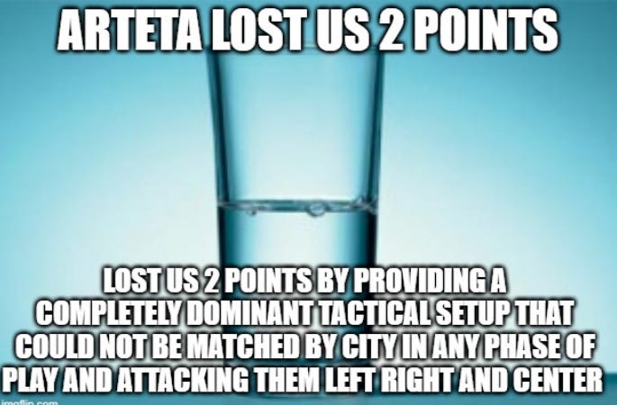 La finalul zilei, tot ce contează e că Arsenal și-a adăugat aseară doar un punct în clasament și e la cinci puncte distanță de primul loc după primele cinci etape.
