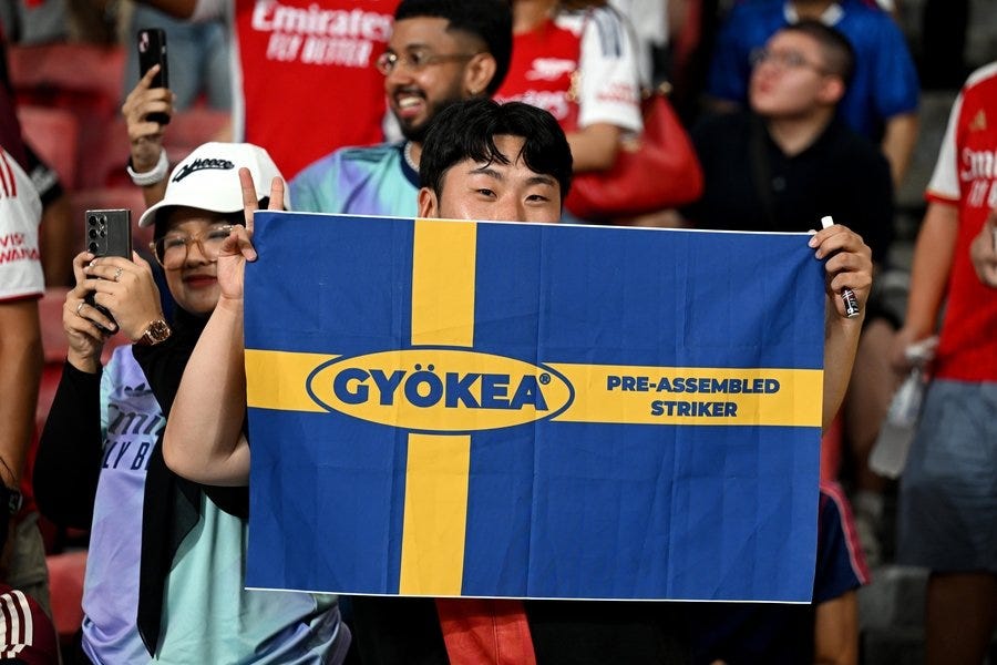 Nici eu n-am putut să mă abțin să nu-mi fac poza cu faimoasa celebrare misterioasă a lui Gyokeres. La fel, mi s-a făcut pielea de găină când am văzut intrarea suedezului pe stadionul din Singapore și cum zeci de fani îl întâmpinau făcând faimosul său gest. E o euforie greu de explicat.