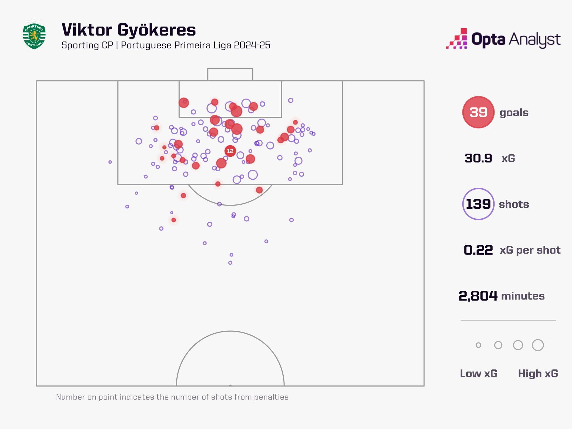 Gyökeres poate fi o excepție, dar întrebarea rămâne validă: Ce garanție îți oferă niște cifre excelente într-un campionat mediocru? Și atunci trecem și la the eye-test.